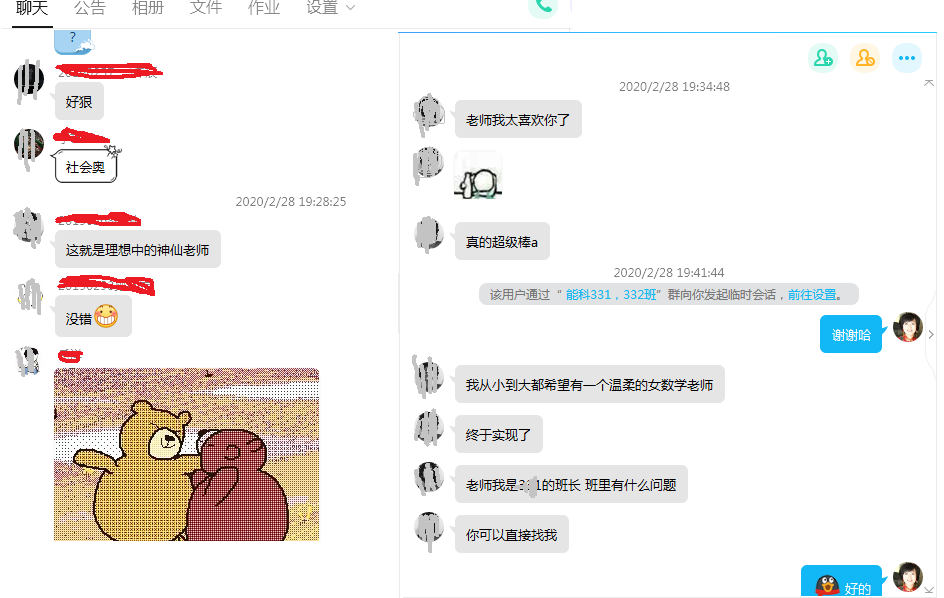 通过多种在线平台(智慧树、QQ群、腾讯课堂、千笔系统)的教学结合,线上课进行的有条不紊,甚至比课堂教学还要活跃,学生和老师们做到了充分互动。在循序渐进的努力下,班级的教学气氛变得十分活跃。