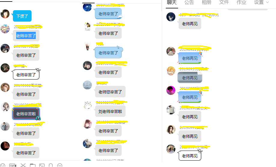 每次上完课,说完“再见”之后,学生们都会在QQ群里不约而同的发出“老师辛苦了”,“谢谢老师”等这样的语句。在线上课的特殊方式无形中默契了师生关系,增进了师生情谊,这些都让刘老师心中感到很“温暖”。