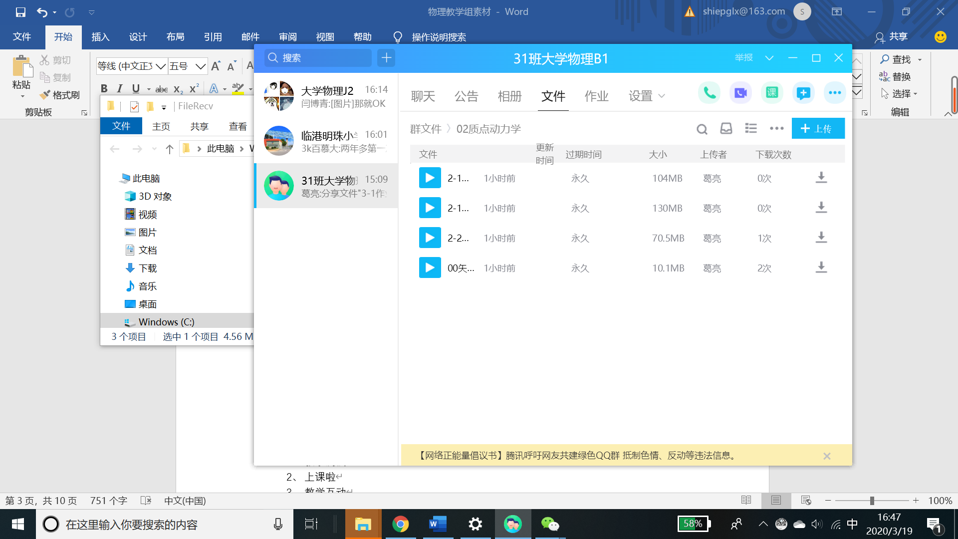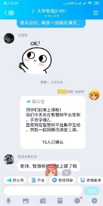 工欲善其事,必先利其器。《大学物理》课程以智慧树学习平台为依托,结合大学生青睐的QQ平台,形成以“智慧树”+“QQ”的基本平台开展在线教学。除了“树”与“企鹅”,腾讯会议、腾讯课堂、QQ群课堂和钉钉等多种平台混搭互补,在支部党员的带动下,教师们逐个尝试,只为找到最好的模式。早在二月中旬,熟悉平台、学习演练、模拟上课、创新教学方法、讨论交流等已成为教师们每天的必修课。为了让学生获得最佳的声音效果、视觉效果,教师们主动升级了宽带,配置了高性能的电脑,配上了麦克风、手写板、集线器,电脑软件更新至豪华配置;为了便于学生课后复习,教师们通过录屏软件把教学过程录下来,并对因网络不流畅导致的教学过程卡顿进行剪辑,保证学生自主学习时连贯、高效。