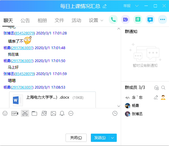 学习的过程中伴随着遗忘,线下的练习必不可少。同学们通过千笔系统按时按量完成老师线上布置的作业任务,使知识得到巩固。2019级班长们自觉录制各科老师上课的视频,传到qq群中以供大家复习,以解决因网络原因而出现的“知识断层”。班级中的学习委员帮助任课老师们每天监督上课的签到情况,及时汇总反馈于老师。课后自行通过老师预留的教学PPT以及教学视频反复巩固的学习方法,有效的提高了同学们的自主学习性。