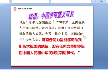 开班仪式之后,各位学员参加了开班第一课。课程由上海党建研究会研究员、上海第二工业大学形势与政策教研室主任、复旦大学历史学博士李朝军主讲,主题为“学习党史国史,增强历史担当”。课上,李朝军老师选取了几个重大历史节点进行解读,从开国大典站起来到抗美援朝扬国威,从“两弹一星”铸辉煌到改革开放富起来,这一个个事件中透露出来的,是自力更生、艰苦奋斗的优良品格,更是我们把个人理想与祖国命运,把个人志向与民族振兴联系一起的爱国主义精神。李老师进一步围绕着党史、国史和中华民族伟大复兴的主线,帮助各位学员更好的认清国情,理解近代中国的发展过程,认清中国特色社会主义道路的艰辛探索。经过重大事件的分析,他最后指出“中国梦可望又可及!”,希望学员们能够树牢“四个意识”,增强“四个自信”,以此作为继续前进的方向。