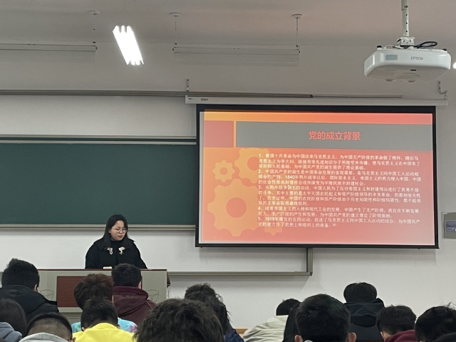 读史以明志,知古以鉴今,班会伊始,冉慧琳同学带领同学们共同学习了党成立的背景,她表示“中国共产党的一百年是矢志践行初心使命的一百年,是中国共产党带领中华民族迎来从站起来、富起来到强起来的伟大飞跃。2021年我国脱贫攻坚战取得了全面胜利,完成了消除绝对贫困的艰巨任务,创造了又一个彪炳史册的人间奇迹。作为大学生,我们不仅要认真学习专业知识,还要铭记初心。”冉慧琳同学的领学,使班级同学们对共产党有了更深的认识,并深刻体会和认识到今天的生活来之不易。