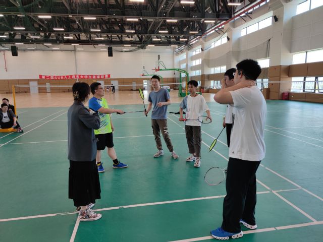 作为全民健身的倡导者、践行者,习近平总书记曾多次在不同场合强调全民健身的重要意义,“全民健身是全体人民增强体魄、健康生活的基础和保障,人民身体健康是全面建成小康社会的重要内涵,是每一个人成长和实现幸福生活的重要基础。”发展体育运动,增强人民体质,已成为我国体育工作的根本方针和任务。而师生文化艺术节系列活动注重的是老师与学生的同时参与,所以这次羽毛球比赛,我们将老师与学生混合分组,尽可能地以一个老师与一个学生的形式组成一队进行2v2的对抗赛。在每个场地,都有一位裁判负责比赛的公平公正与记分工作。