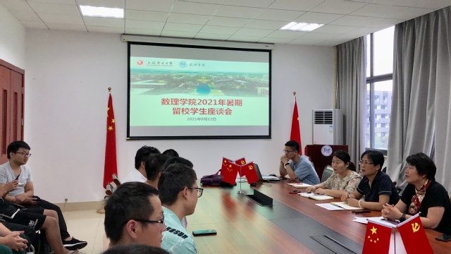 为深入了解暑假留校学生生活、学习状态,解决暑期留校学生愁难急盼问题,加强暑假期间校园疫情防控,8月12日,永利集团88304官网在临港校区数理楼B301召开暑期留校学生座谈会,学院党委书记徐广新、副院长孙玉芹、辅导员及全体留校本科生、研究生代表参加了座谈会。会议由学院党委副书记赵月琴主持。
