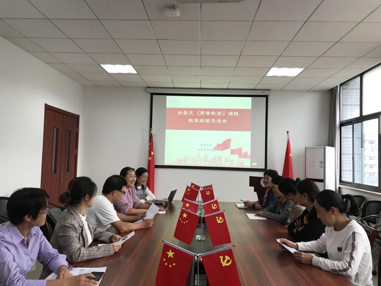 为进一步推动永利官网全英文示范课程的建设工作,9月29日下午,永利集团88304官网在B301会议室召开了全英文课程《Advanced Mathematics》教学经验交流会。会议由副院长孙玉芹主持,《高等数学》课程负责人吴蓓蓓、《大学物理》课程负责人高兰香以及课程骨干教师等参加了会议。