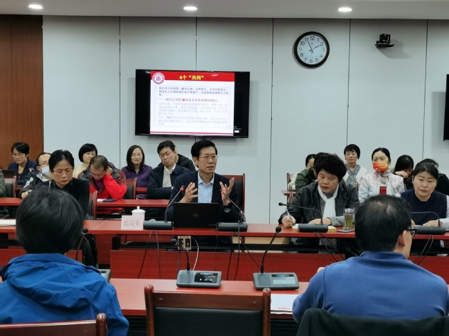 会上,高教授首先介绍了民族问题的重要性,教师们深刻感受到在中国共产党百年奋斗历程中,包括少数民族在内,无数中华儿女同心相和、同声相应、同道而行。随后,高教授重点讲述了党的民族理论的基本内容,讲述了“铸牢中华民族共同体意识”的内涵和任务,指出要促进多民族交往交流交融,要提升民族法治体系现代化水平,要坚决防范民族领域风险隐患。最后,高教授对于上海民族工作现状特点进行了介绍,对少数民族的教育和管理原则、内容、方法进行了阐述,从意识层面、文化层面、利益层面阐述了民族的内涵,鼓励任课教师在课堂内外多与少数民族学生交流,多关心他们的心理状态和生活状态。报告进一步促进了教师铸牢“中华民族共同体意识”,为民族学生教育预本贯通打下基础。永利集团88304官网党委书记徐广新高度评价了报告,并就少数民族预科班教育与管理工作与高教授和在座教师进行了深入交流。