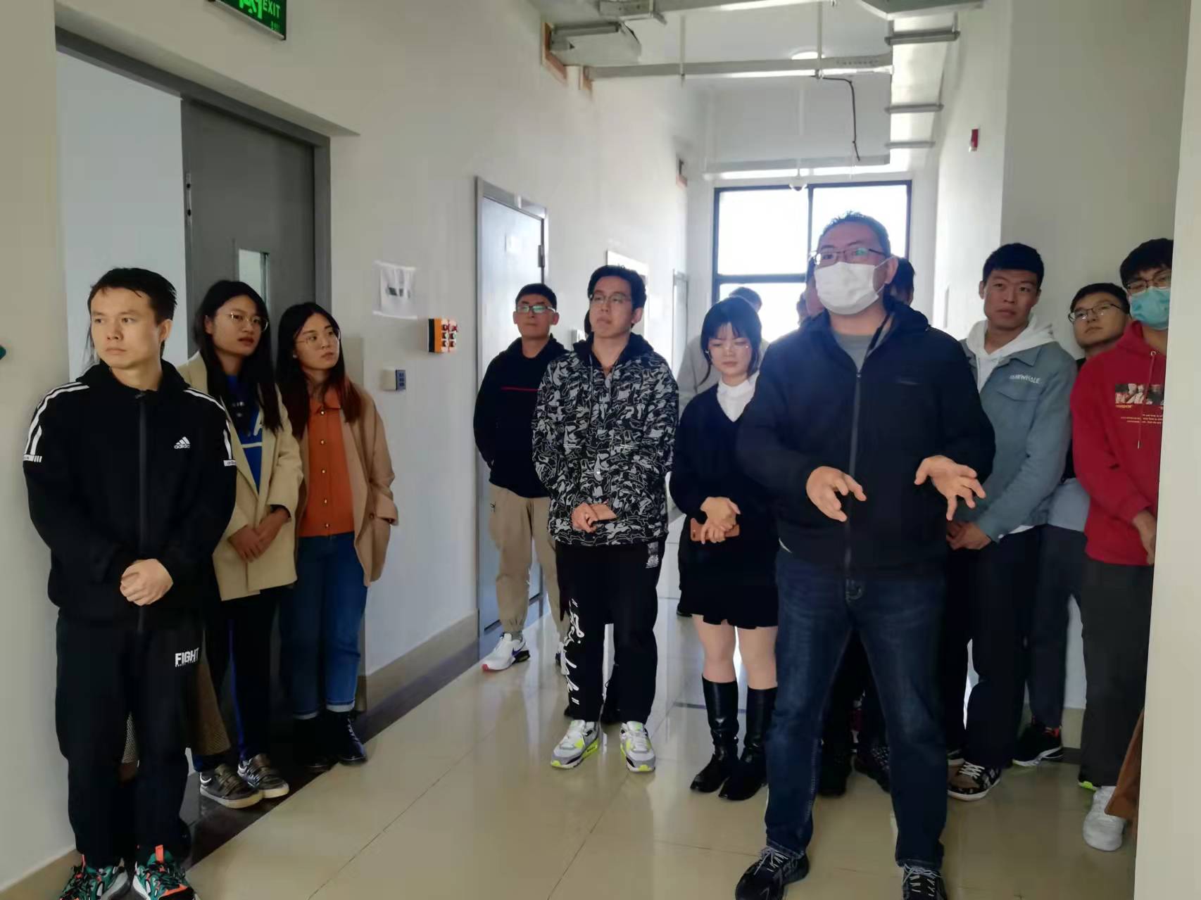 演练场景2:数理楼B503实验室,学生在做加热实验时,由于温度过高,造成局部发生了小面积着火,学生开展自救行动,立即用一楼楼道中的沙桶将火扑灭。同时,同组学生第一时间也联系到自己的导师,导师立即赶到现场进行处理。