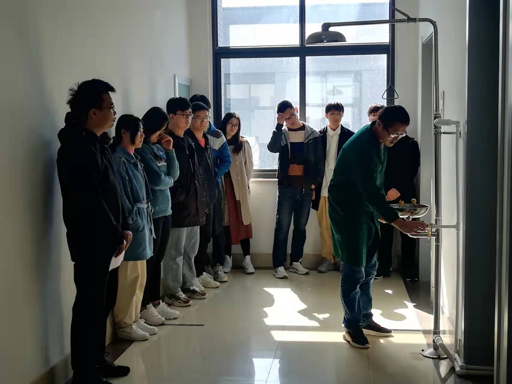 为了防止实验室意外事故的发生,保障实验人员人身安全及健康,并减少因事故造成的人身伤害及财产损失;进一步加强师生建立个人安全意识,主动学习知识以及注意安全行为,熟悉安全事故发生时所要采取的措施和流程,增强全体师生在突发公共事件下的应急反应和自救、互救能力;2021年11月8日上午10:30,永利集团88304官网在临港校区B2数理楼组织开展安全应急演练,主要内容是:1.应急喷淋洗眼装置的使用;2.消防沙灭火沙桶、灭火器的演练。学院分管领导、实验中心主任、研究生导师和学生等40余人共同参加了此次演练活动,学院副院长林佳担任演习总指挥,校实验室与资产管理处杨勇、浩莹老师应邀到场指导。