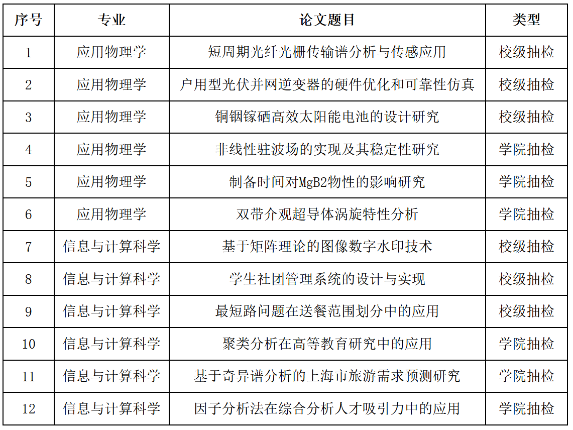为提升毕业设计(论文)工作质量,落实闭环管理。根据学校相关工作部署和永利集团88304官网2022届毕业论文抽检工作安排及实施方案的要求,采用“校级抽检+院级抽检”相结合的方式,从学院2022届121篇论文中按照10%比例随机抽取12篇,主要对毕业论文选题意义、写作安排、逻辑构建、专业能力、 学术规范等要素进行抽检评议,具体名单如下: