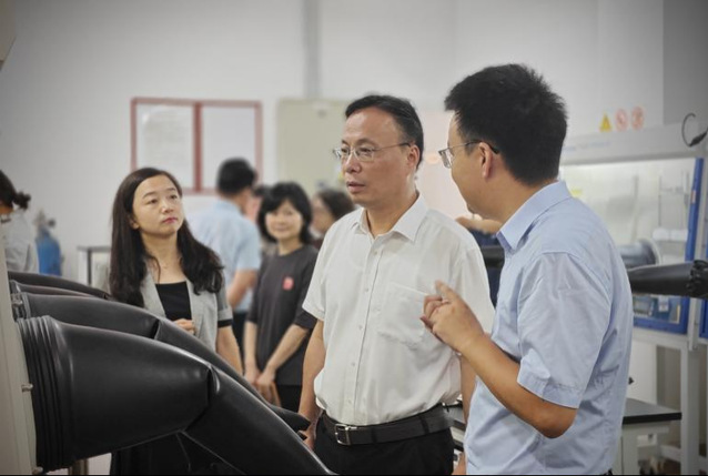 校领导一行首先实地考察了太阳能电池特性测试实验室、磁控溅射实验室、新能源发电实验室、声学实验室、综合性物理实验室等研究平台,深入了解了学院的教学科研环境和软硬件设施。