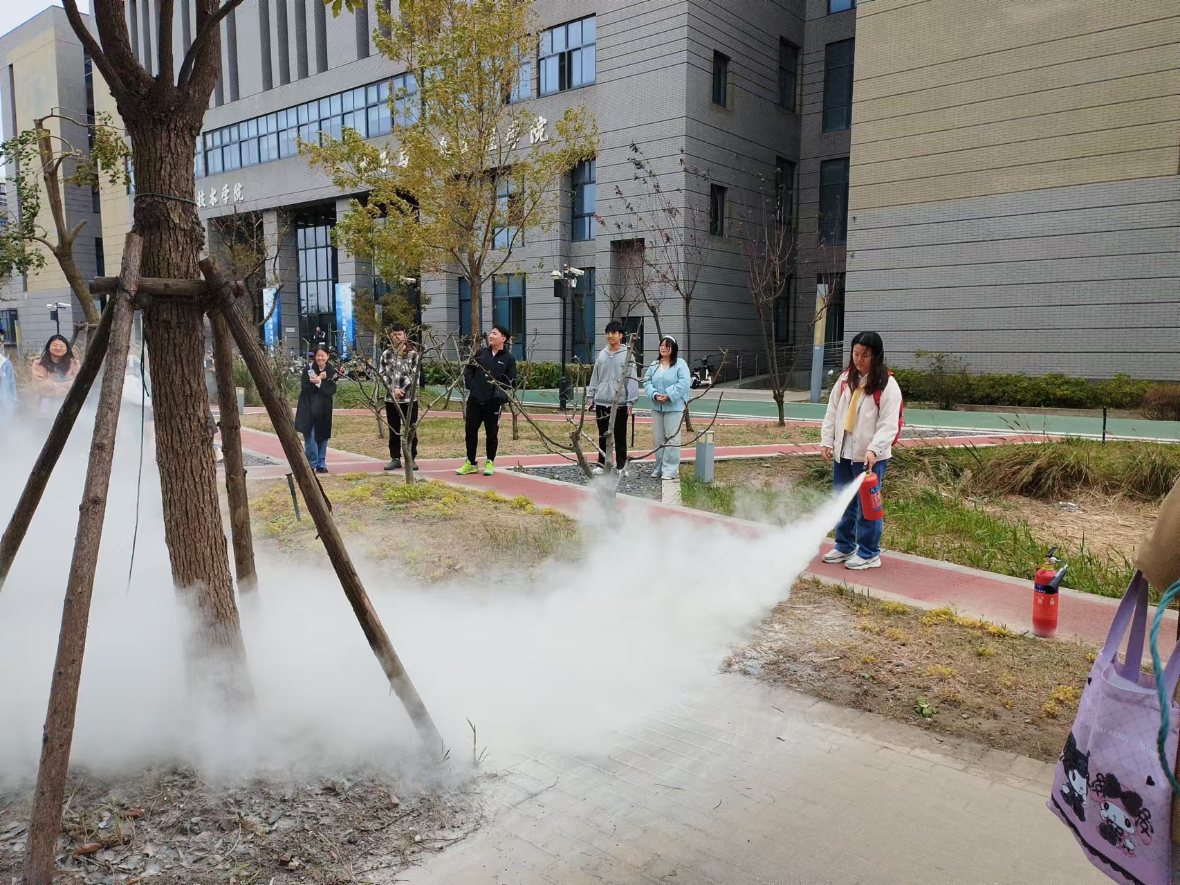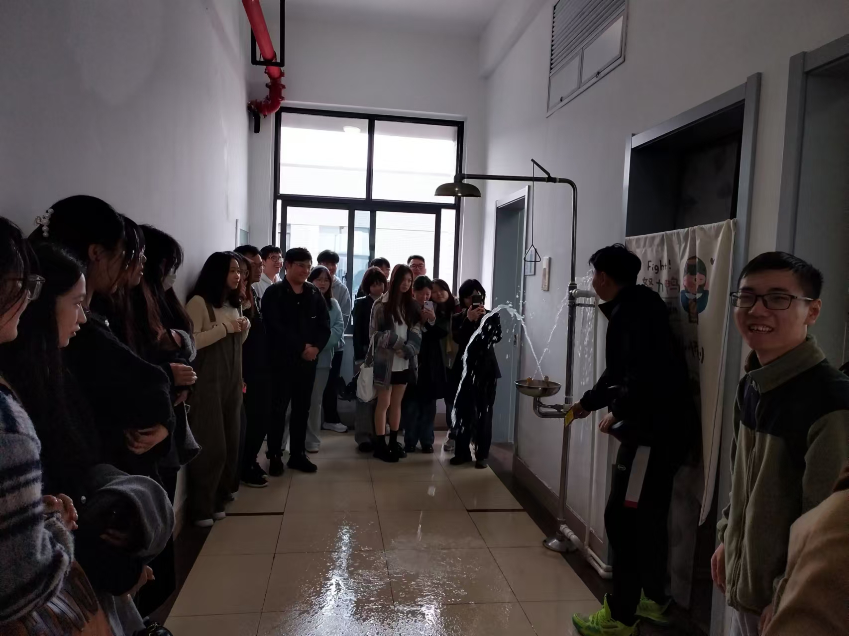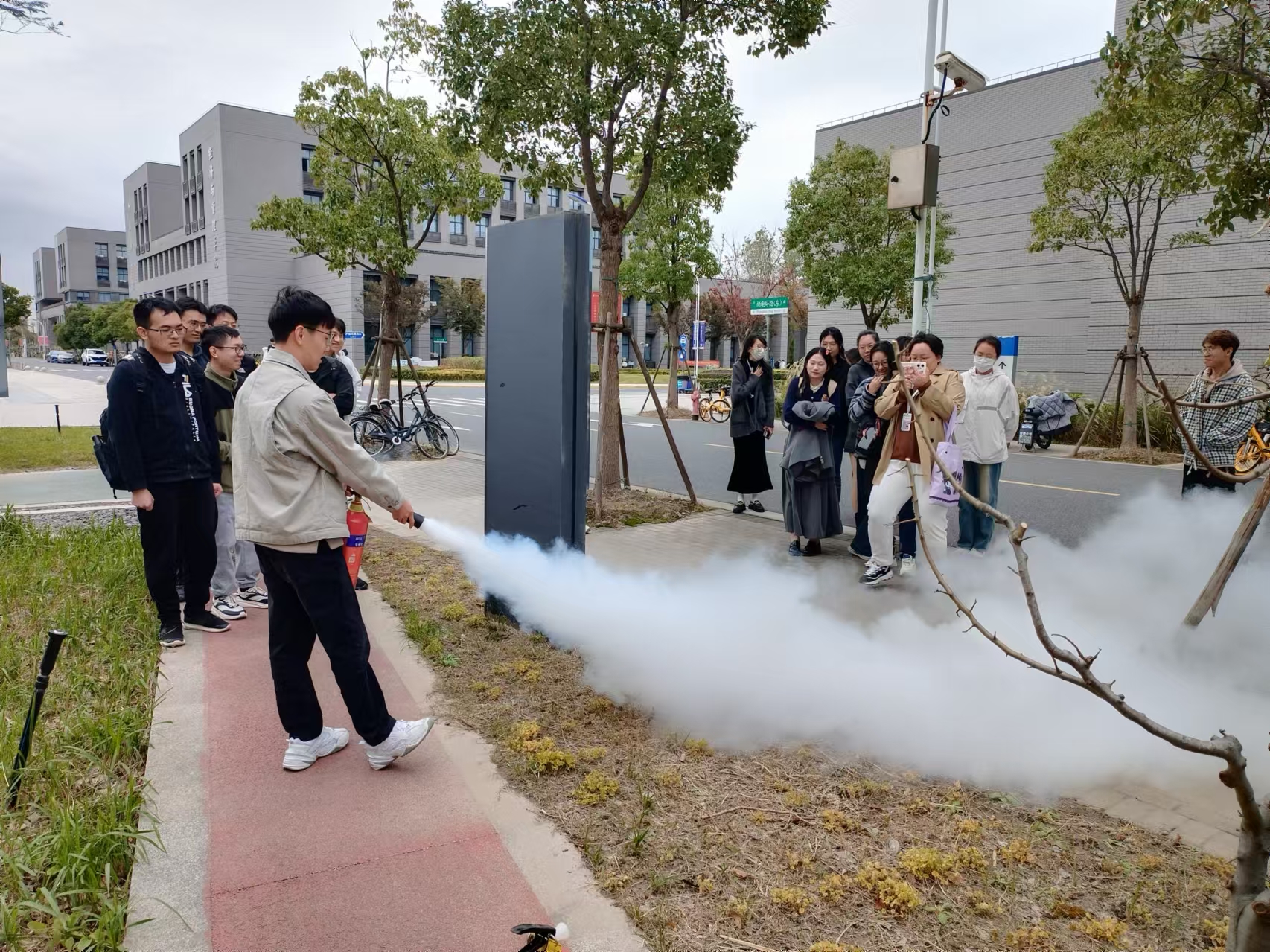 为进一步增强全体师生的消防意识、遇到实验室安全突发事件时的应急反应和自救、互救能力,同时检验我院实验室安全的组织能力、应变能力和实战能力,熟悉安全事故发生时所需要采取的流程,2024年 11月8日12:20-13:30,我院在临港校区数理楼组织开展安全应急演练,主要内容包括实验室安全卫生讲座、应急喷淋洗眼装置的使用、消防沙灭火沙桶及灭火器演练。学院副院长林佳、实验中心主任陈东生、研究生导师和学生等110余人参加了演习。