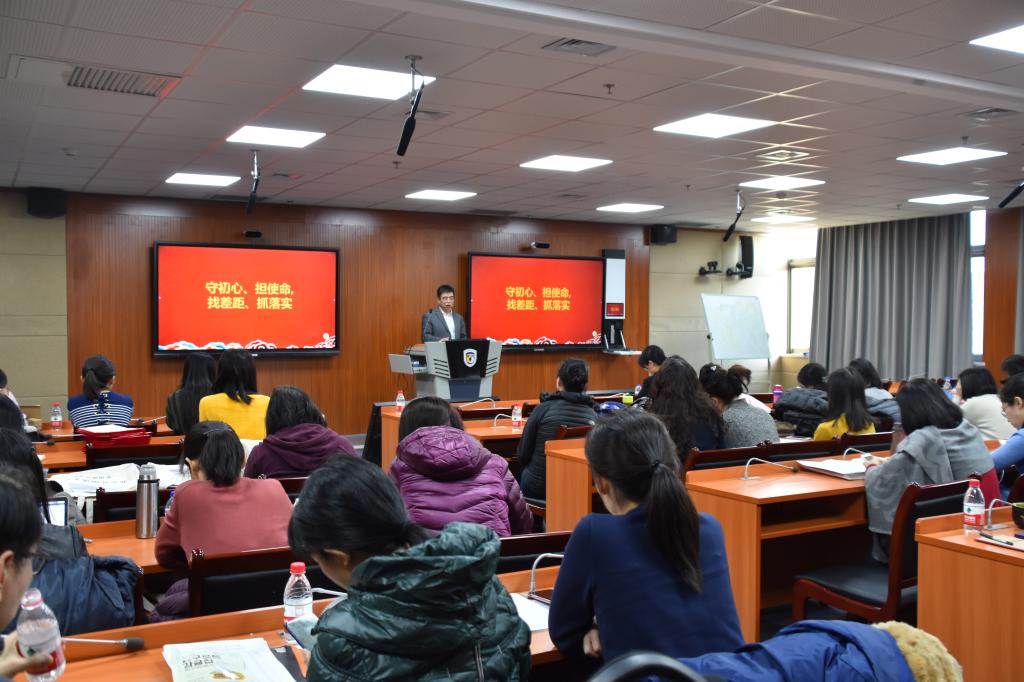 蔡鸿首先向全体教职工做了本学期学院主题教育成果专项汇报,并全面总结了学院在教学、教师发展、行政、科研、工会以及学生工作等方面的各项工作,赞扬了学院教师本学期所取得的可喜成绩和无私奉献精神,并在会上分享了best365官网援疆教师苏乐舟老师的新年寄语。