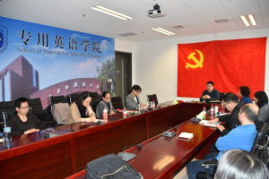 3月21日下午3:00,best365手机版官方网站在西校院国际大厦1016室召开新学期教学工作会议。会议由副院长蔡鸿老师主持。参加会议的有各教研室主任与课型组组长、院长助理仵胜奇老师、办公室主任匡琳琳老师、教学秘书庄双老师以及外事秘书金玲、谭雯文老师,共计14人。会议由仵胜奇老师主持。