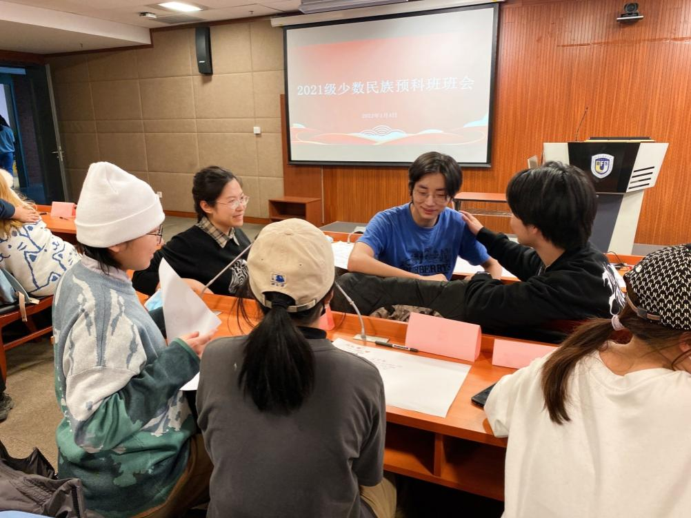 1月4日下午,best365手机版官方网站2021级少数民族预科班在西校区国际大厦417教室召开期末总结班会。学院党总支书记蔡鸿,副书记、院长侯俊霞,副院长仵胜奇,副院长蒋岳春,教师代表以及全体预科生一同参加了此次班会。会议由辅导员孟媛主持。