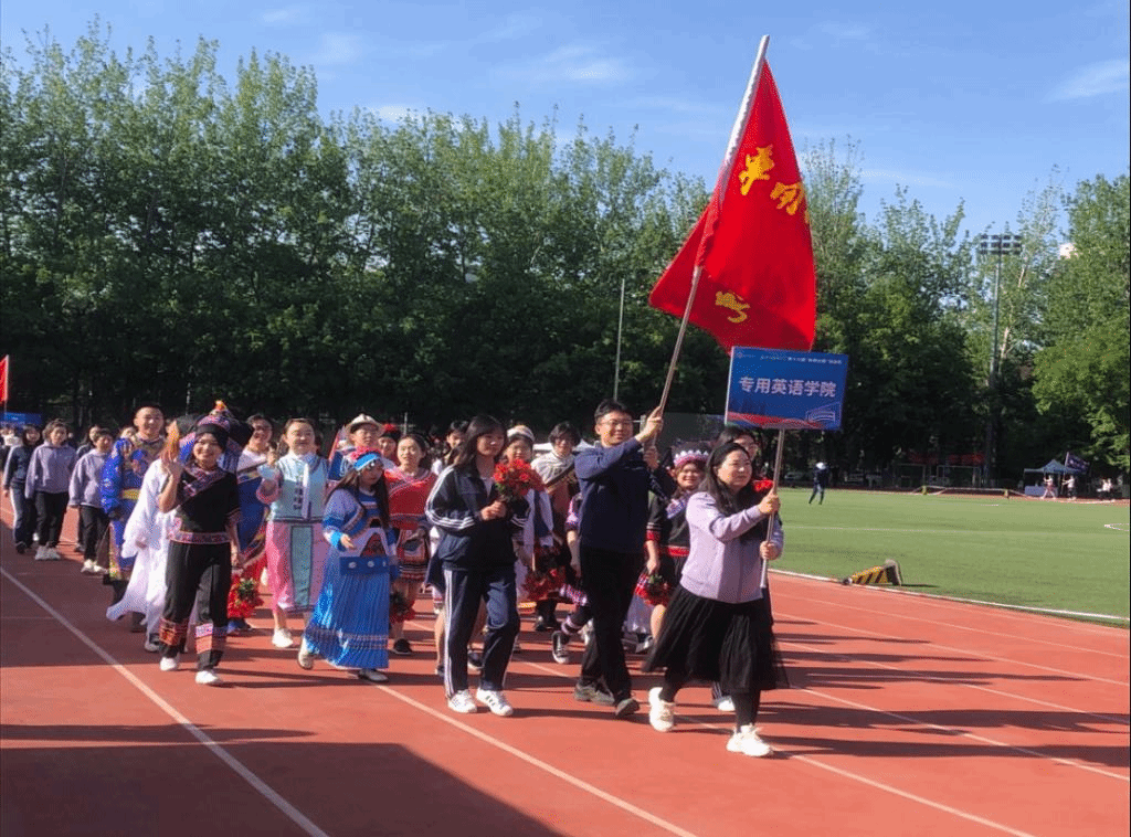 4月22日,春光明媚,飞絮濛濛,best365手机版官方网站第十六届“外研社杯”运动会在东校区体育场举办,best365官网师生以饱满的热情参加了本届运动会。开幕式上,best365官网教职工、少数民族预科生和MTI学生衣着整齐,口号响亮,迈着矫健的步伐绕场一周,接受学校领导、特邀嘉宾和全场观众的检阅。