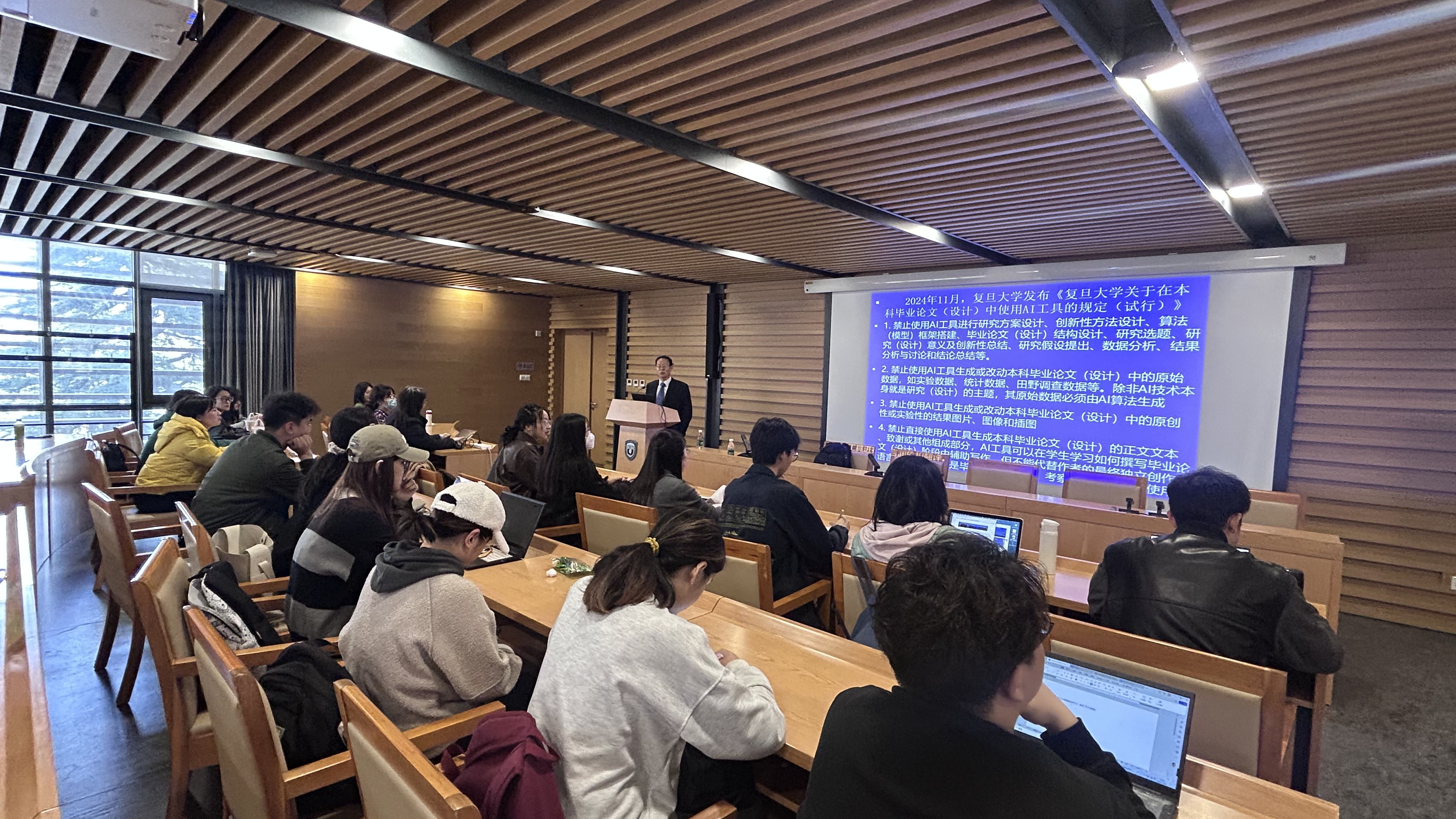 讲座阐述了ChatGPT、DeepSeek等大语言模型对学术论文撰写的重要意义,梳理了国内外学术期刊及复旦大学等高校对人工智能工具的使用规范等相关规定,分析了人工智能工具在论文写作中的可用范围与禁止领域,并通过具体案例研究,探讨了如何避免因滥用人工智能工具而导致的原创性缺失、真实性存疑及学术不规范等问题。他强调,合理使用人工智能工具能够提升研究效率,但必须严格遵守学术伦理,防止学术不端行为。