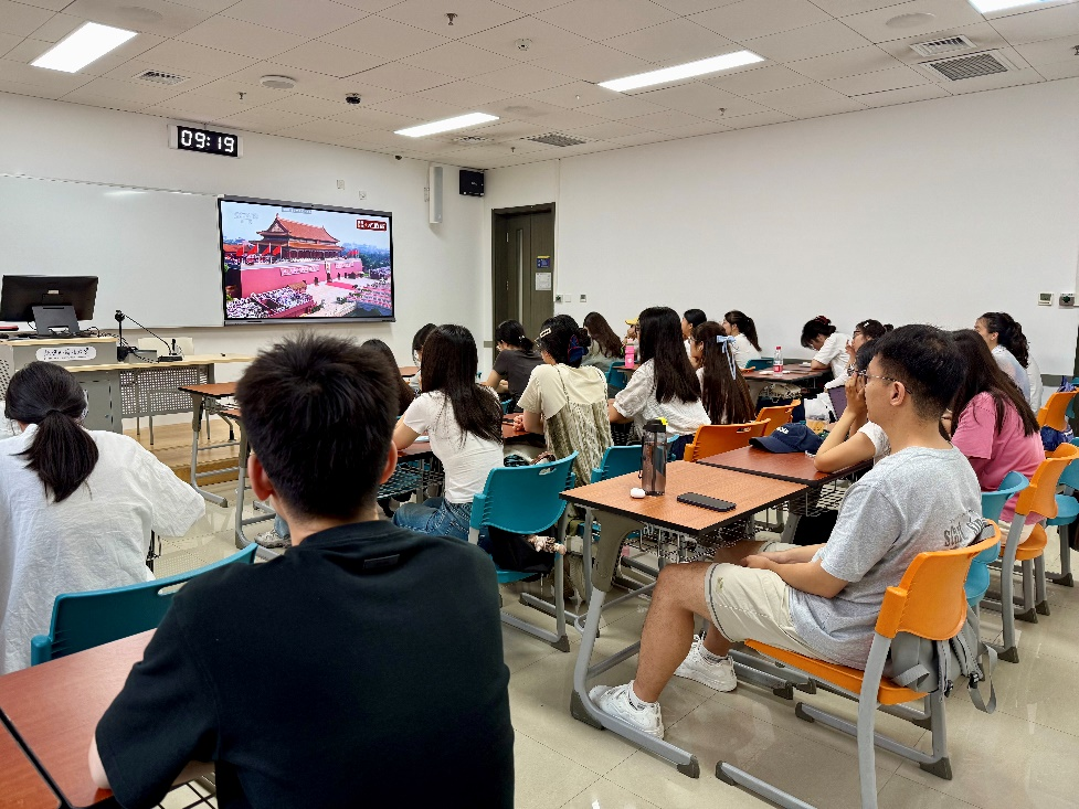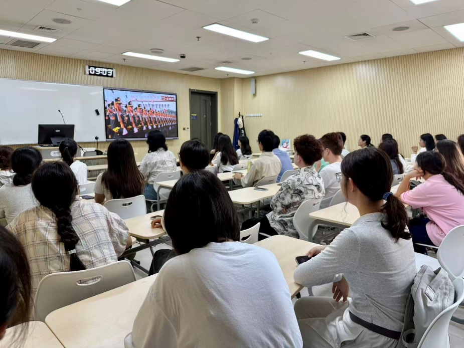 2025年9月3日上午,纪念中国人民抗日战争暨世界反法西斯战争胜利80周年大会在北京天安门广场隆重举行。best365手机版官方网站在国际大厦427室、510室组织2025级全体新生集中观看“纪念中国人民抗日战争暨世界反法西斯战争胜利80周年大会”直播。