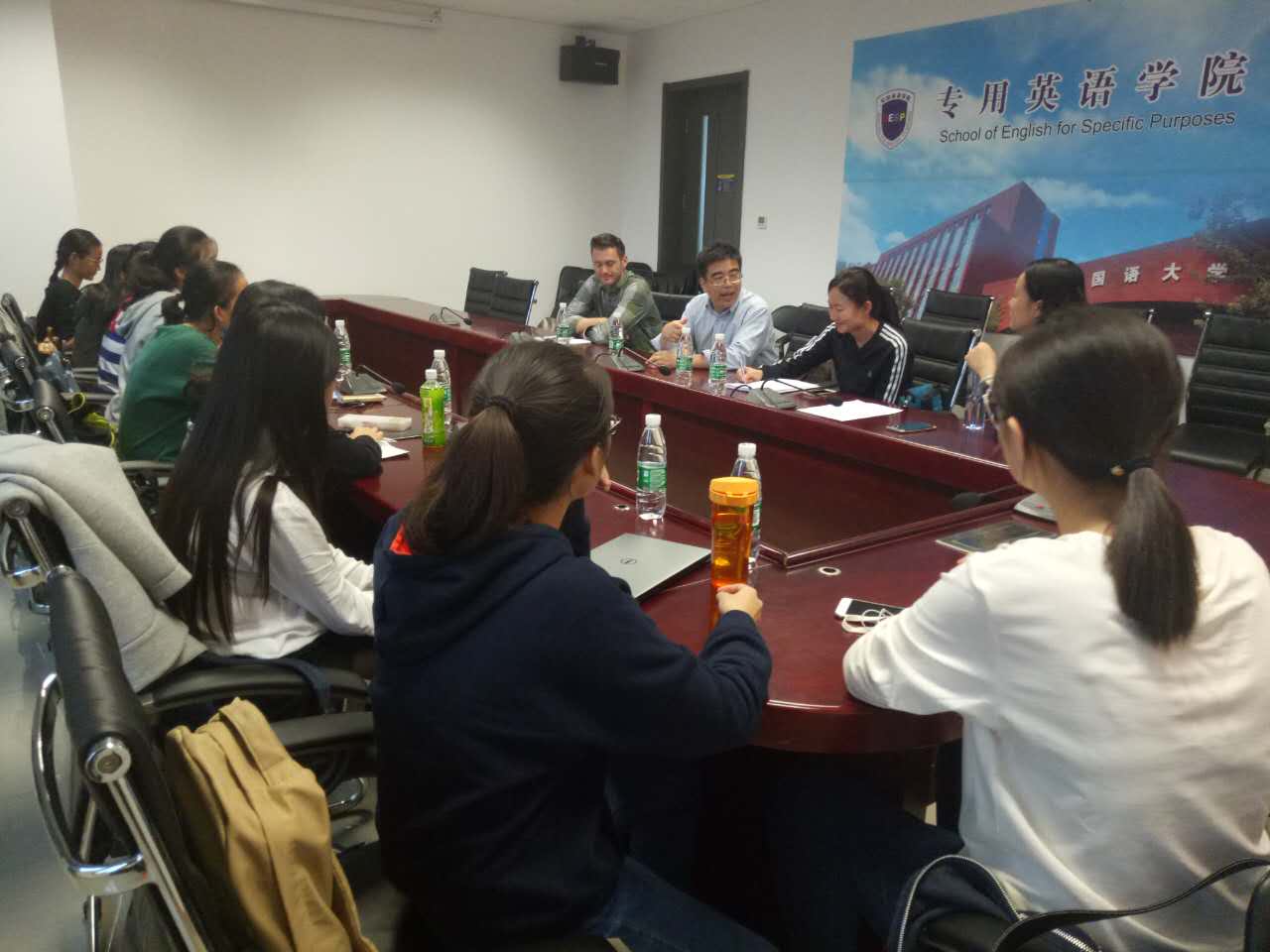 2016年9月29日下午5点,best365手机版官方网站在西院综合楼1016会议室召开学院英文辩论队的首次会议并进行了第一次训练。学院副院长蔡鸿老师、辩论队的三名中外教练以及全体队员出席参加会议。会议由辩论队负责人李溪老师主持。蔡老师代表学院领导首先祝贺同学们通过选拔赛正式成为best365手机版官方网站辩论队的队员,并鼓励同学们在中外教练的指导和帮助下不断提高自己的英文辩论水平,争取早日成为辩论大赛上的优秀辩手,为学校争光。李溪老师对辩论队的训练纪律、长远目标、训练方法和相关计划进行了详细说明。随后,两名中外教练Dr. Perterson 和盖淑华老师分别发言表示要全力做好教练工作。最后,三名教练和队员们进行了开训热身活动。通过首次训练,同学们对英文辩论有了新的认识,感觉收获很多,信心倍增。