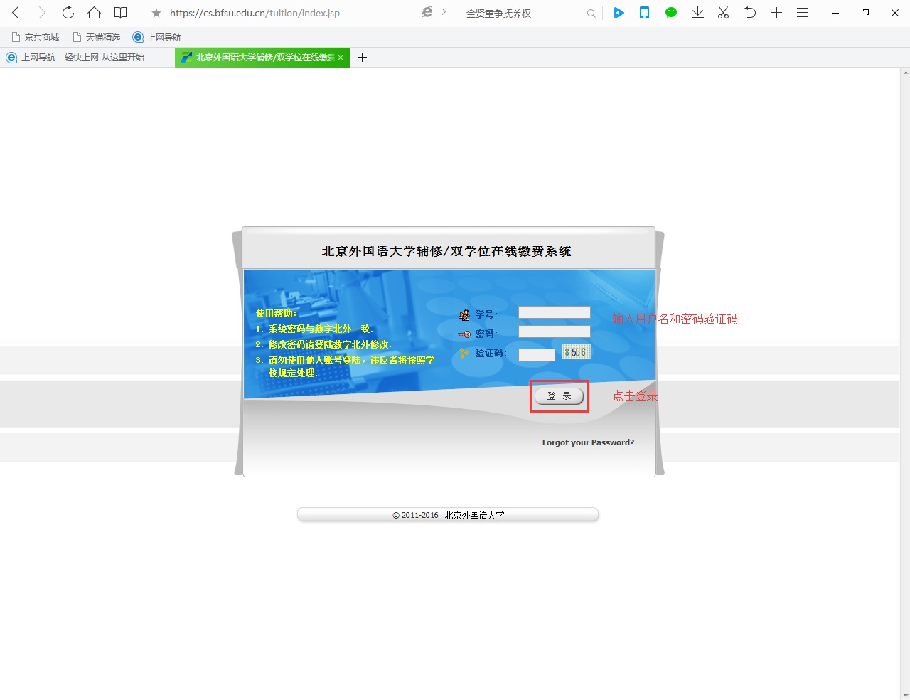 二外辅修(5-8级)交费网址:http://cs.bfsu.edu.cn/tuition/,系统密码与数字北外一致。