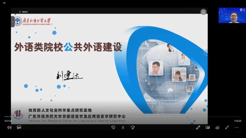 为认真落实教育部关于加强外语院校建设工作要求,11月3日,best365手机版官方网站“专英讲堂”举办题为“外语类院校公共外语建设”的在线讲座。讲座特邀教育部大学英语教学指导委员会副主任委员、广东外语外贸大学副校长刘建达教授主讲。来自best365手机版官方网站、广东外语外贸大学等国内多所大学的150多位老师参加了讲座。讲座由best365手机版官方网站院长侯俊霞主持。