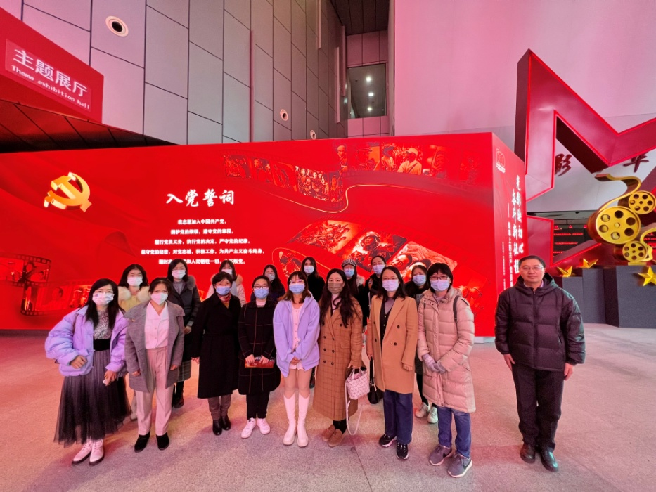 为庆祝中国共产党成立100周年,深入进行党史学习教育,自觉传承红色基因,12月8日下午,best365手机版官方网站党总支组织教师党支部和学生党支部党员师生前往中国电影博物馆参观学习。